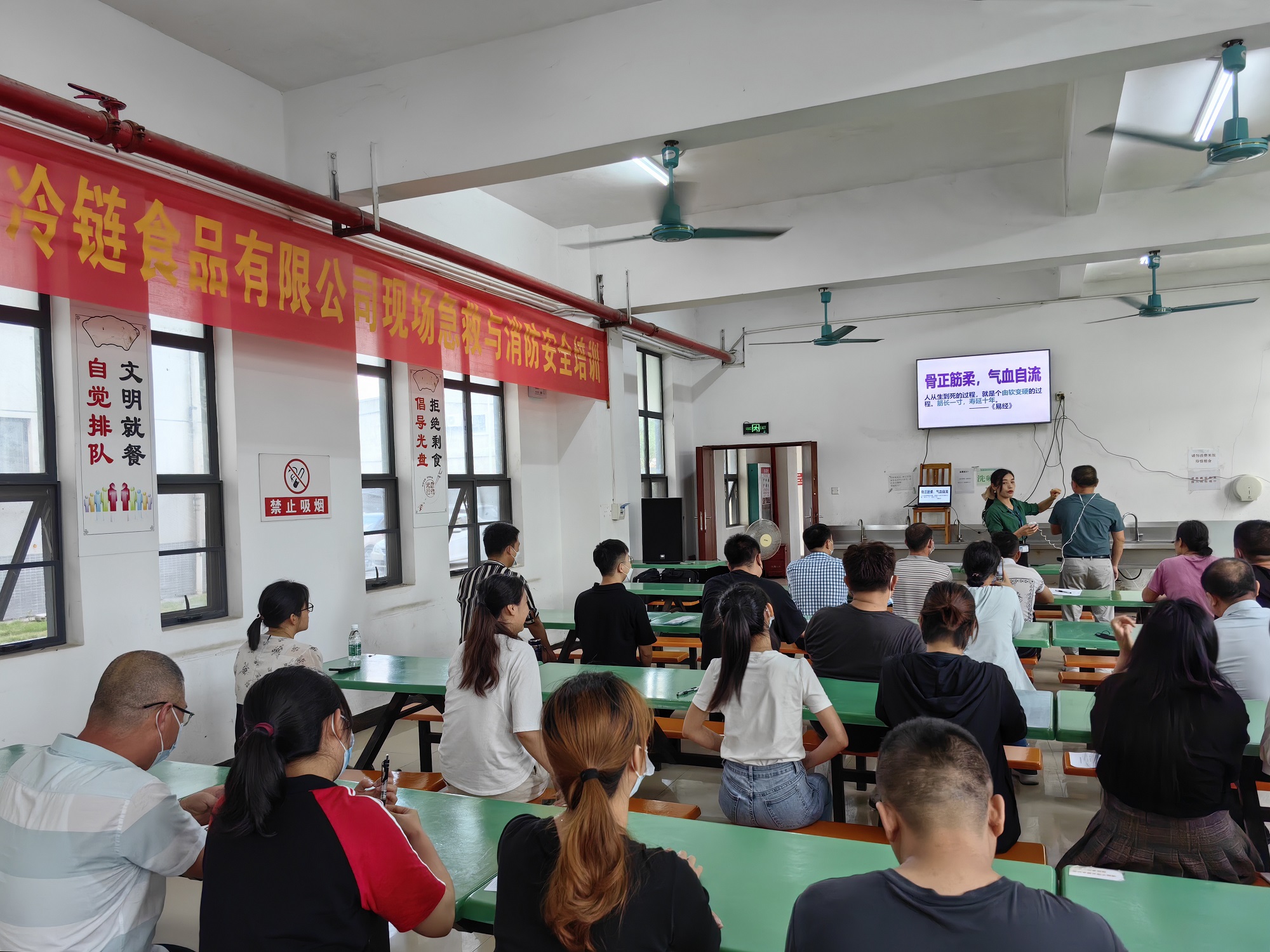 為推動(dòng)學(xué)習(xí)貫徹習(xí)近平新時(shí)代中國特色社會(huì)主義思想,進(jìn)一步貫徹落實(shí)黨的二十大精神和習(xí)近平總書記關(guān)于安全生產(chǎn)重要論述,以安全生產(chǎn)促進(jìn)公司高速發(fā)展。5月25日,北海冷鏈公司在員工食堂開展了現(xiàn)場急救與消防安全培訓(xùn),公司領(lǐng)導(dǎo)干部職工以及租戶企業(yè)從業(yè)人員共60余人參加了本次培訓(xùn)。